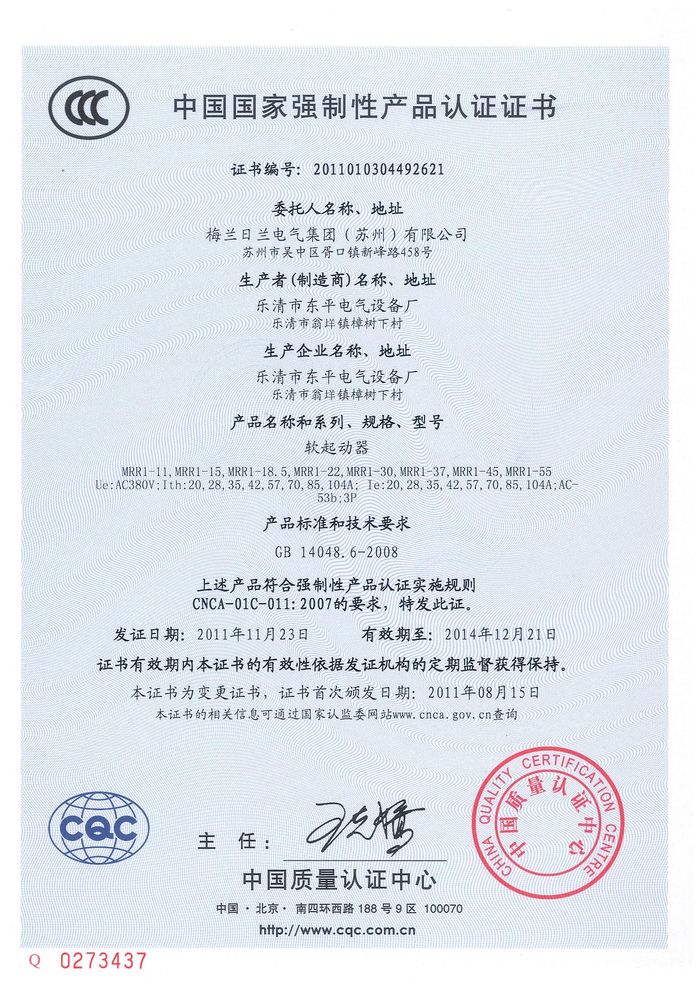MRR1-11軟啟動(dòng)資質(zhì)證書