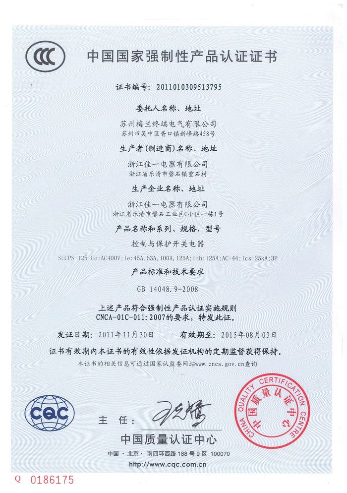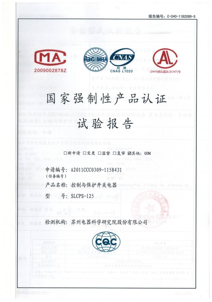 SLCPS-125控制與保護(hù)開關(guān)資質(zhì)證書