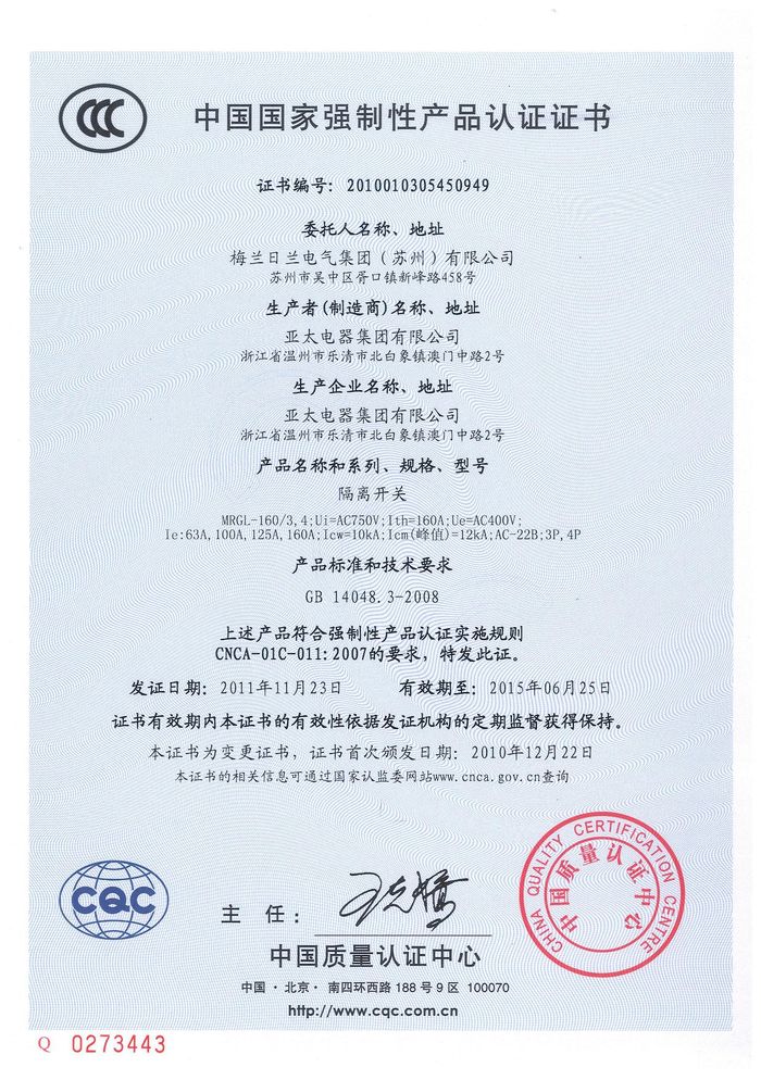 MRGL-160隔離開(kāi)關(guān)資質(zhì)證書(shū)