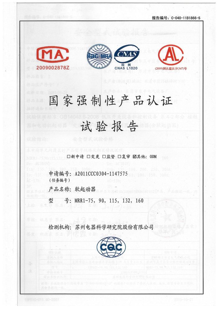 MRR1-75軟啟動(dòng)資質(zhì)證書(shū)
