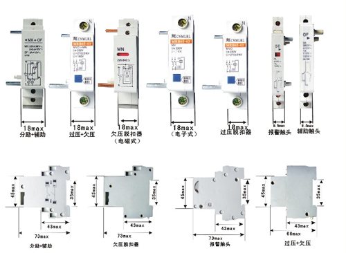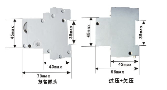 注:分勵(lì)+輔助、欠壓脫扣器安裝尺寸相同,報(bào)警觸頭與輔助觸頭安裝尺寸相同