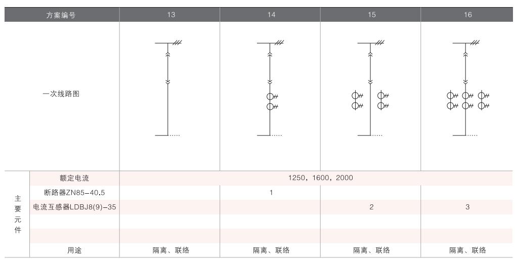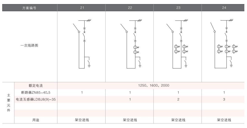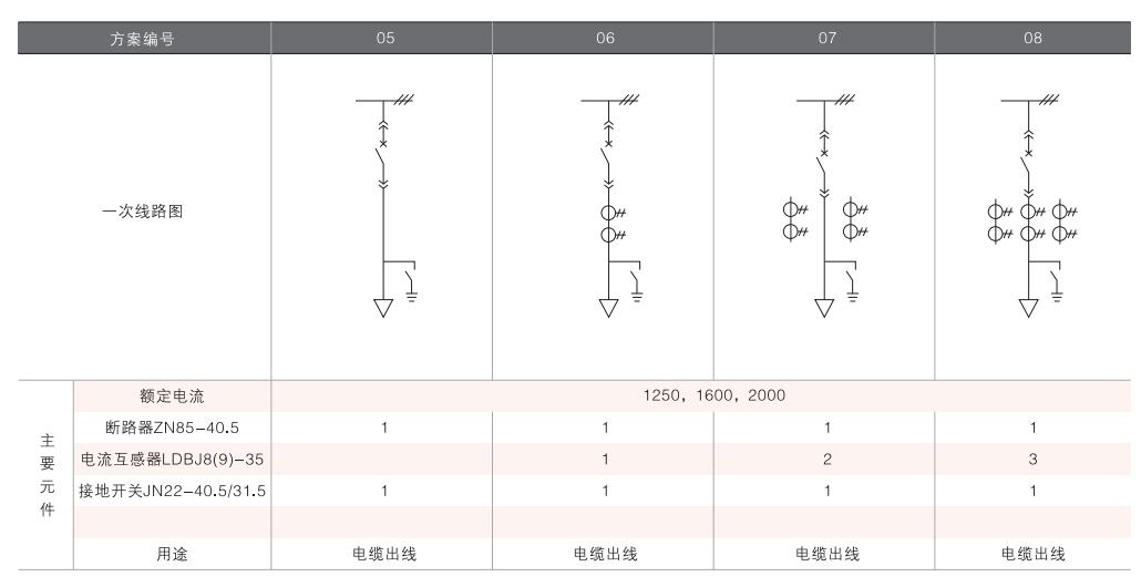 開關柜的一次接線方案有27個常用典型方案,能滿足用戶電纜進出線、架空進出線,聯(lián)絡級測量、保護等的需要,若有不同與現(xiàn)有方案的其他方案的需要,請與廠方協(xié)商。